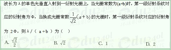 (a+b)sinΦ=λ,根號2(a+b)sin2Φ=λ。λ/(a+b)=sinΦ=[根號2](a+b)sin2Φ,因此Φ=45度,sinΦ=[根號2]/2,選A