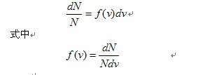 令N表示一定量的氣體所包含的總分子數,dN表示速率分布在v→v+dv內的分子數,dN/N表示在這一速率區間內的分子數占總分子數的百分率。由實驗可知,dN/N與dv成正比,且與速率v有關,我們把這個關系寫成如下的形式