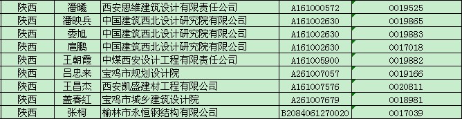 陜西2013年結構工程師初始注冊審查意見公示(第四批)