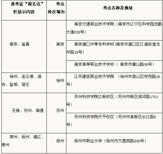 請考生打印準考證后,按照下表所列對應關系仔細核對考點,并務必認真閱讀本文“注意事項”及附件有關內容,提前做好考試各項準備工作。