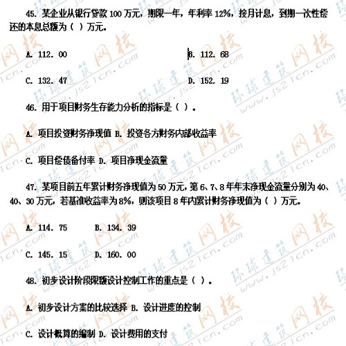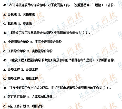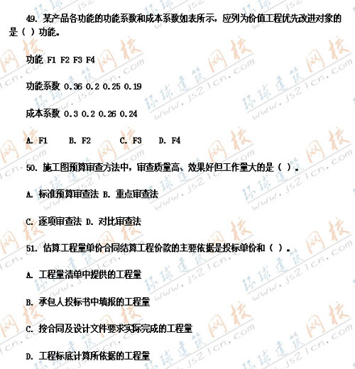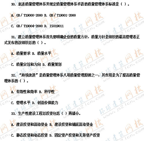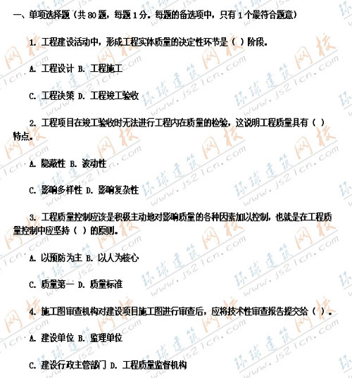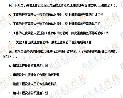 2007年監理工程師考試真題《工程建設質量、投資、進度控制》--單選題