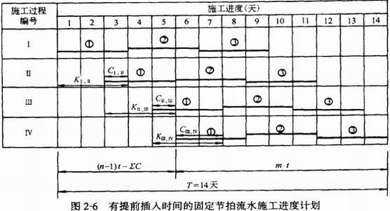 提前插入時間是指相鄰兩個專業工作隊在同一施工段上共同作業的時間。