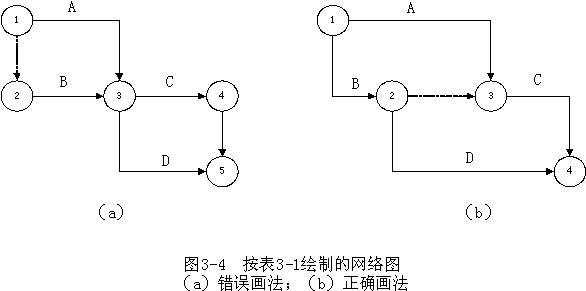 (1)網絡圖必須按照已定的邏輯關系繪制。(見P36圖3-4)