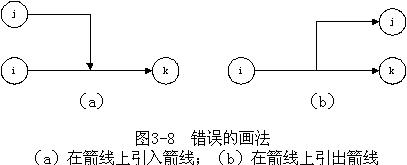 (6)嚴禁在箭線上引入或引出箭線,圖3—8即為錯誤的畫法。