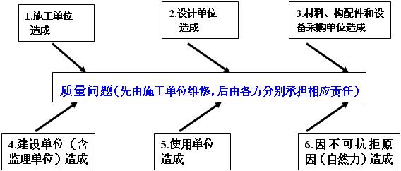 建設(shè)工程在保修范圍和保修期限內(nèi)發(fā)生質(zhì)量問(wèn)題的施工單位應(yīng)履行保修義務(wù)。保修義務(wù)的承擔(dān)和經(jīng)濟(jì)責(zé)任的承擔(dān)按以下原則處理。詳見(jiàn)建設(shè)工程保修和經(jīng)濟(jì)責(zé)任的承擔(dān)原則處理框圖所示。