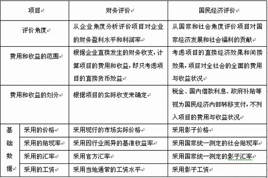建設項目的財務評價和國民經濟評價之間既有聯系,也有區別。兩者的相同點包括評價目的相同、評價的基礎相同、計算期相同等;兩者的區別,可歸納于表4-3.