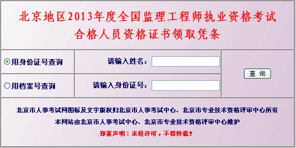 北京2013年監理工程師合格證書領取憑條