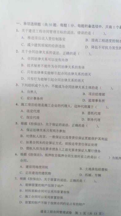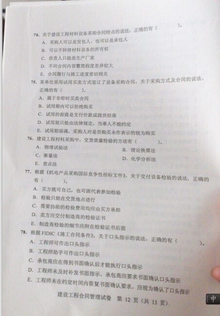 2014監理工程師考試《合同管理》真題圖片(完整版)