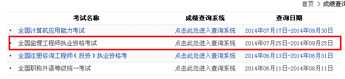 黑龍江2014監理工程師考試成績查詢時間:7月25-9月25