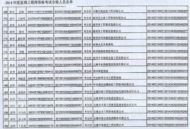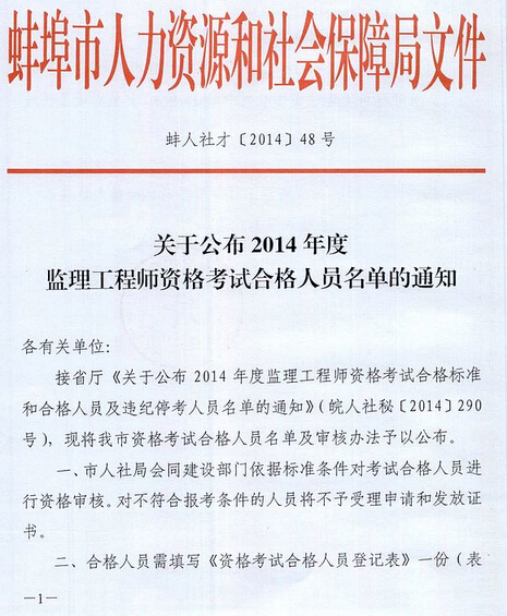 摘要 安徽蚌埠2014年監理工程師考試合格證書領取通知,監理工程師考試合格人員名單如下:
