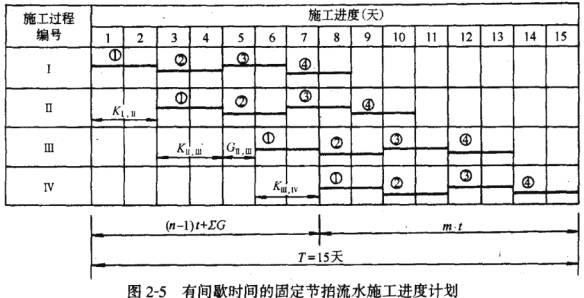1.有間歇時間的固定節(jié)拍流水施工