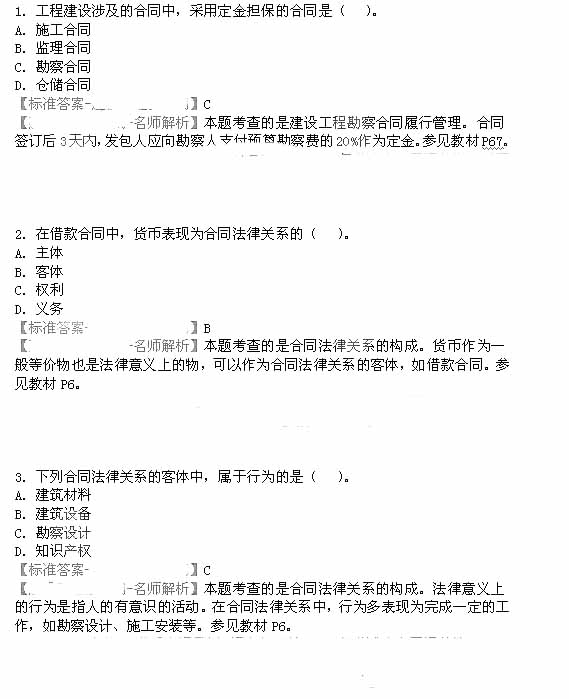 摘要 2015年監理工程師合同管理真題及答案(1-8題)