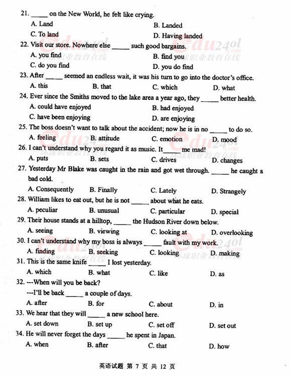 - 2013年江西省成人英語三級考試真題及答案2020-11-03