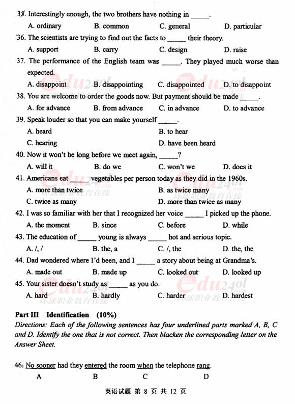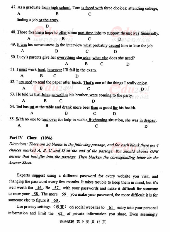 2011年下半年北京成人英語三級考試已經結束,環(huán)球網校為幫助老學員回顧真題,新學員了解真題類型,特別整理2011年11月5日成人英語3級真題。希望學員們都能通過此次考試。