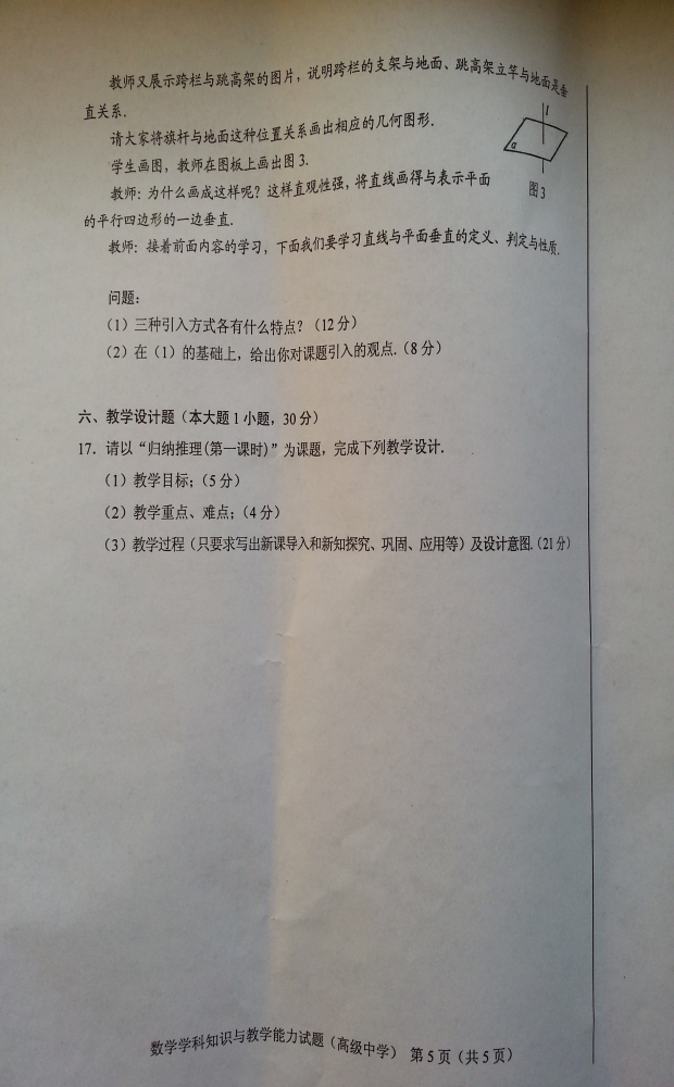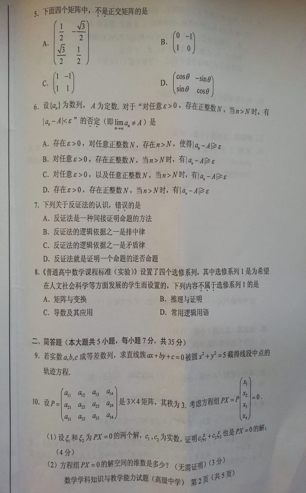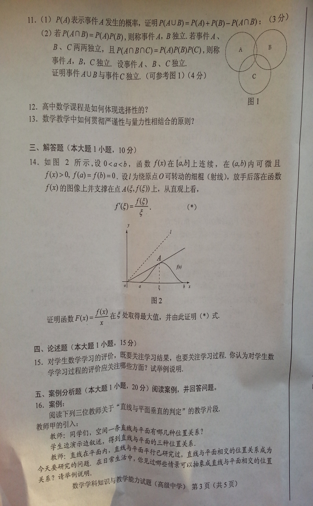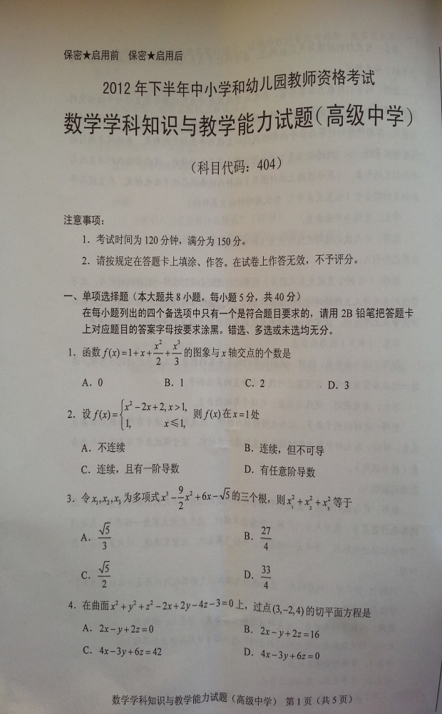 2012下半年《數學知識與數學能力》真題(高級中學)