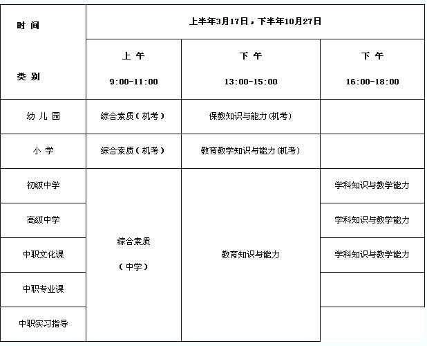 2.考試時間:上半年3月17日,上午9:00―11:00教育學;下午2:00―4:00心理學。