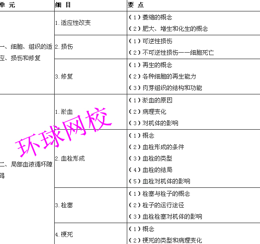 摘要 2011臨床執業助理醫師考試大綱――病理學