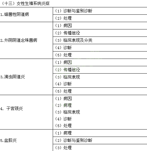 2015年臨床執業助理醫師考試大綱-女性生殖系統