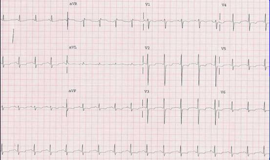 1. 一位68歲男性患者因“胸痛半小時”來到急診就診。患者今早無明顯誘因突然出現心前區悶痛,壓迫感,向左肩放射,休息有所減輕。昨日也有一次類似發作。既往高血壓病10年,服用倍他樂克控制。體檢BP160/90mmHg,心率60次/分。ECG見圖。