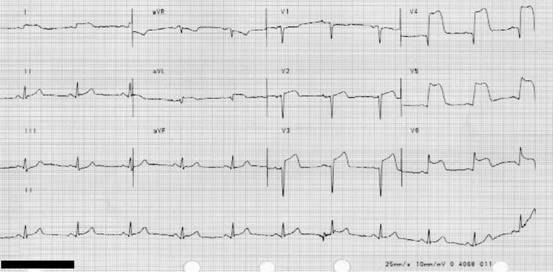 1. 60歲女性因“胸痛3小時”來診。ECG如下