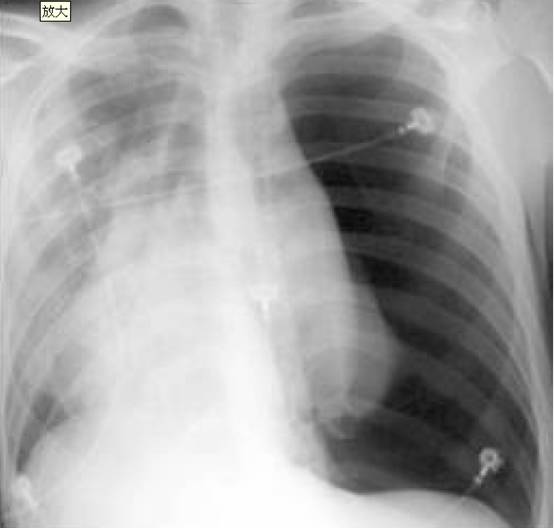 1. 20歲男性因“呼吸困難半小時”來診,伴有大汗、心悸。胸片如圖