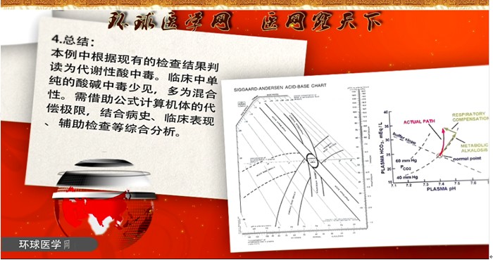 實驗室檢查:血鈉138 mmol/L,血鉀2.6 mmol/L,血氯126 mmol/L,碳酸氫鹽 6 mmol/L,血尿素氮(BUN)7.14 mmol/L(20 mg/dl),肌酐 53 μmol/L(0.6 mg/dl)。