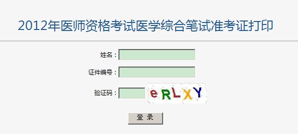 2012年醫師資格考試醫學綜合筆試準考證打印入口