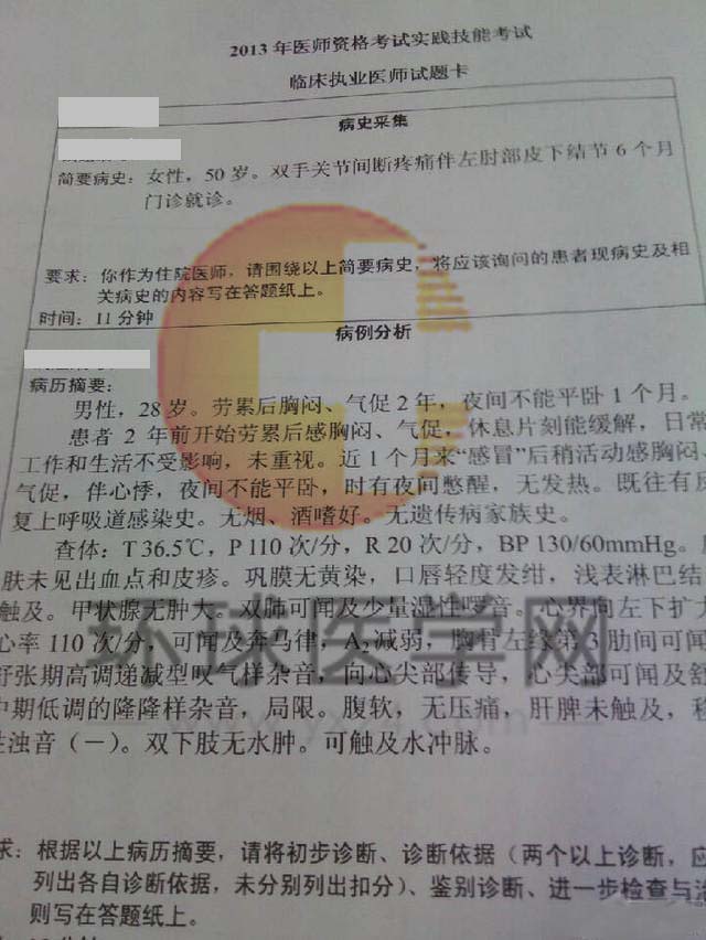 2013年臨床執業醫師實踐技能考試回憶內容匯總(2)