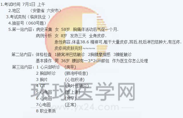 2013年臨床執(zhí)業(yè)醫(yī)師實(shí)踐技能考生回憶7月1日(13)