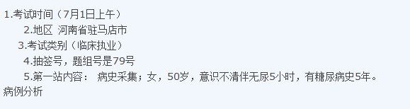 2013年臨床執業醫師實踐技能考生回憶7月1日(15)