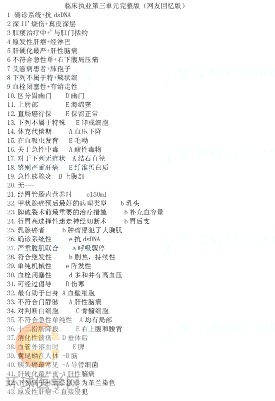 2013臨床執業醫師綜合筆試第三單元真題及答案(網友版)