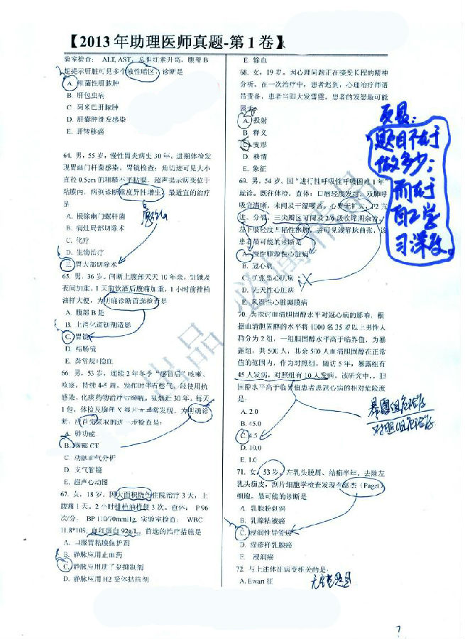 2013助理醫(yī)師真題 第一卷解析