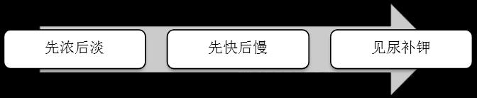 見尿補鉀,濃度不超過0.3%,氯化鉀150~300mg(3~4mmol)/kg/日,缺鉀明顯者為4~6mEq/kg? D. 每日氯化鉀靜滴時間不應(yīng)短于8h。持續(xù)4~6d。 第二天以后的補液(繼續(xù)丟失量+生理需要量) |