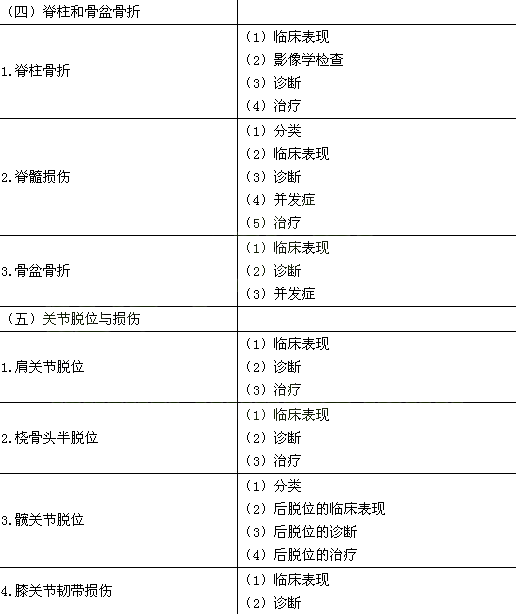 (1)成因與分類 (2)臨床表現 (3)影像學檢查 (4)并發癥 (5)骨折愈合的分期及臨床愈合標準 (6)影響骨折愈合的因素 (7)治療原則 (8)急救處理 (9)開放性骨折的處理 |