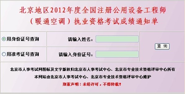 點擊圖片進入北京2012年暖通工程師考試成績查詢入口