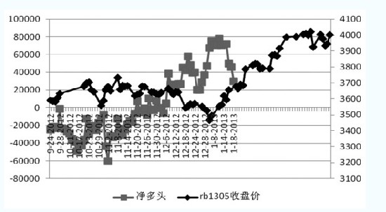 RB1305合約凈多頭與價格關系