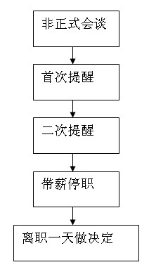 這種新的績效改善方法強(qiáng)調(diào)不使用懲罰,取消了警告、訓(xùn)斥、無薪停職,著眼于要求個(gè)人承擔(dān)責(zé)任和決策。最后,公司管理層還進(jìn)行非常大膽而令人吃驚的改革――取消傳統(tǒng)的最后處分步驟――無薪解雇,代之以大膽的新方法,帶薪停職處分。新績效改善的最后處分是通知員工第二天將被停職;他必須在停職日結(jié)束時(shí)回來做出決定,要么解決當(dāng)前問題并完全承諾在各方面工作中達(dá)到令人滿意的表現(xiàn),要么就另謀高就。公司負(fù)擔(dān)那天的工資,以表示希望看到員工改正并留下來的誠意。但是,如果員工再次犯錯(cuò)就會(huì)遭到解雇。何去何從,主動(dòng)權(quán)完全掌握在員工自己手里。具體實(shí)施步驟如圖5-6所示。