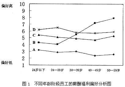 1、圖1是某公司不同年齡段員工對可供自由選擇的薪酬福利的偏好的調查結果。這4種不同