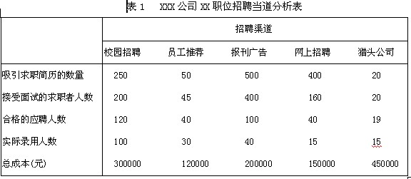 2、某大型集團公司人力資源部為了探究更有利于公司招聘某職位人員的渠道,在對以往招聘的相關資料進行整理的基礎上,形成了一份統計表,見表1。