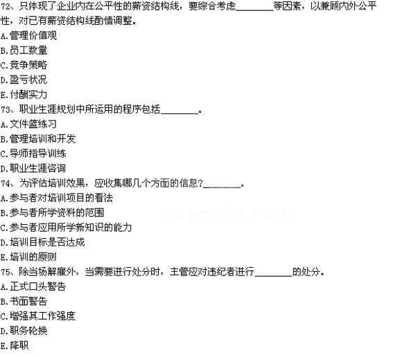 2010年人力資源管理專業知識與實務考試(中級)試題