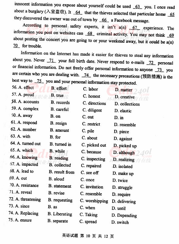 - 2013年江西省成人英語三級考試真題及答案2020-11-03