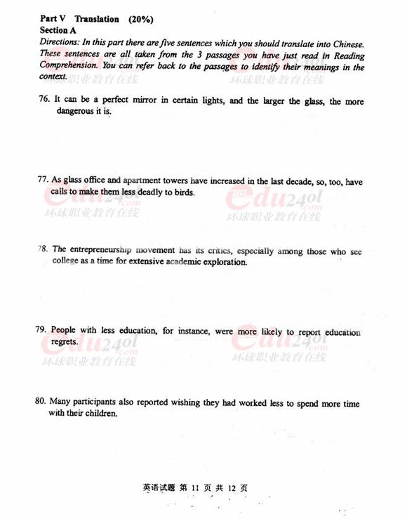 - 2021年4月廣東學位英語考試真題(A卷網友版)2021-05-18