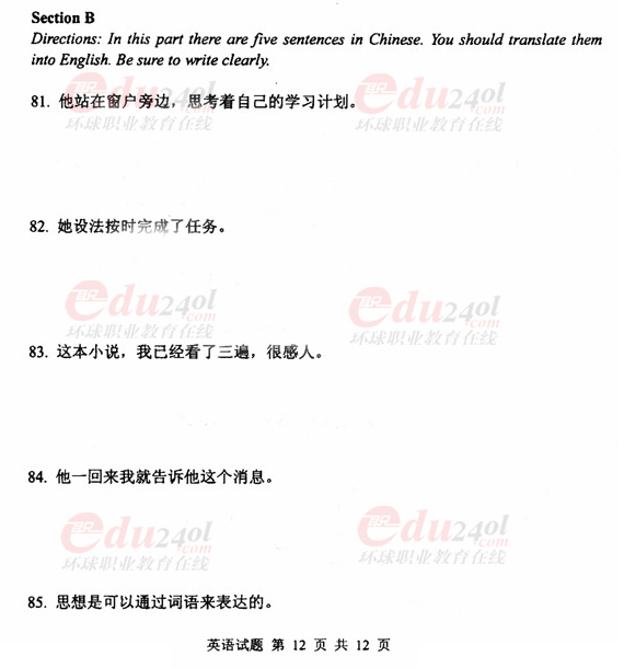 2011年下半年北京成人英語三級考試已經結束,環球網校為幫助老學員回顧真題,新學員了解真題類型,特別整理2011年11月5日成人英語3級真題。希望學員們都能通過此次考試。