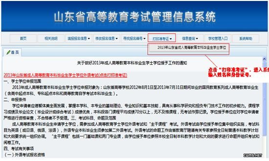 請各函授站、點務必及時通知所有已報名參加考試的學生,認真做好準考證打印工作,如果由于函授站、點的原因造成學生無法參加學位考試的,由函授站、點負責。