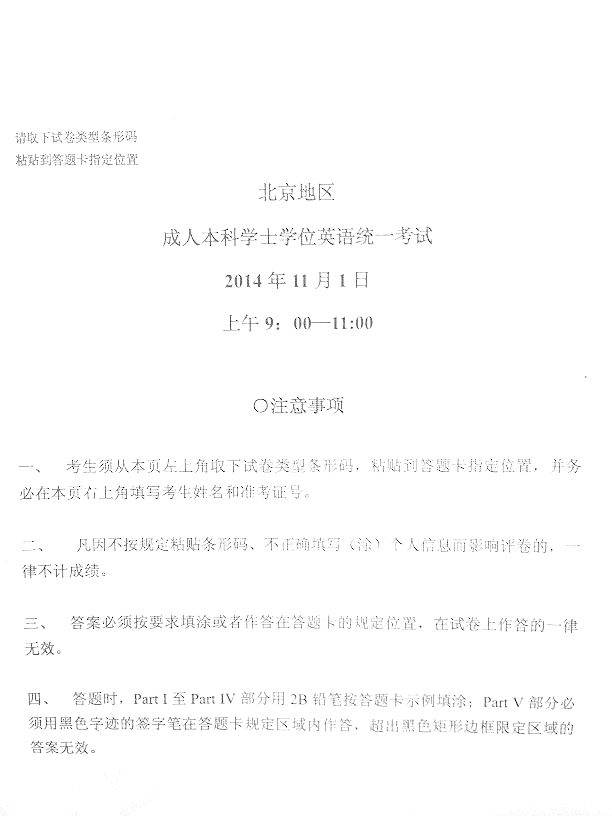 北京市2014年11月成人英語三級真題