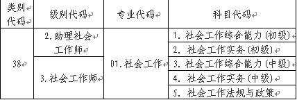 四、社會工作者職業(yè)水平考試類別、級別、專業(yè)及科目代碼表