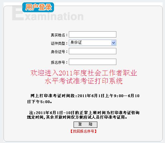 湖南省2011年社會工作者職業水平考試準考證打印時間:6月1-10日