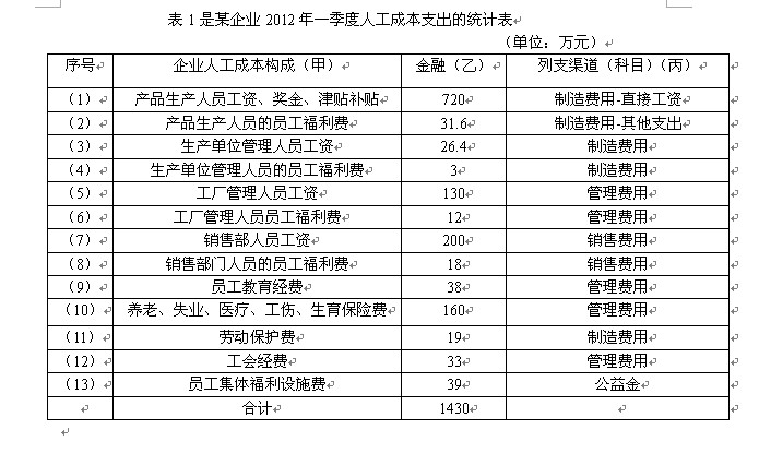 (1)請指出人工成本各項目的列支渠道(科目)并填寫在表1(丙)欄內。