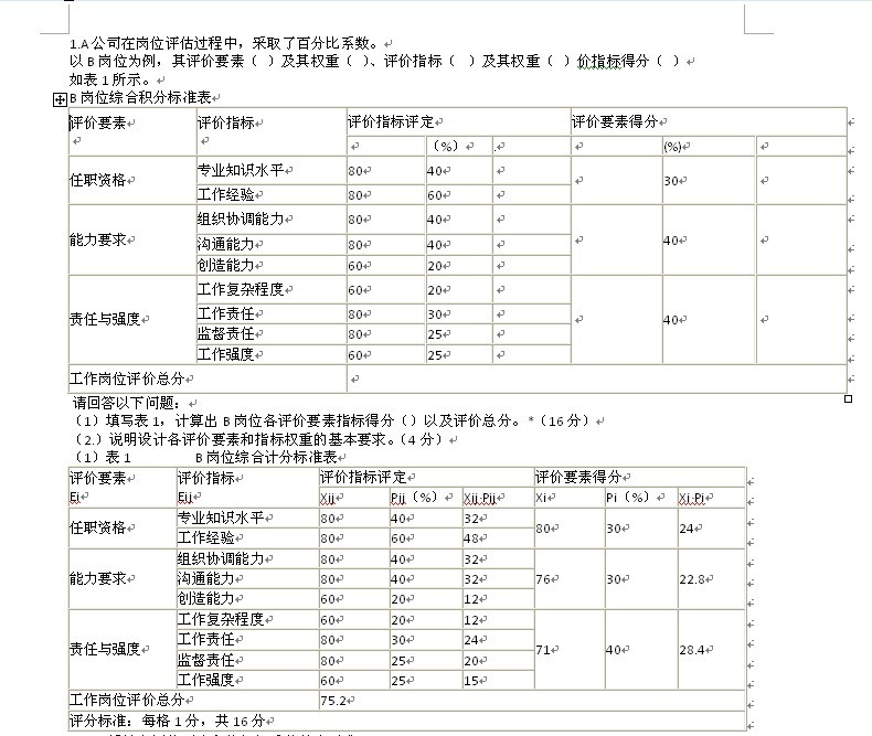 - 2012年下半年人力資源管理師考試表格類題匯總2012-11-09