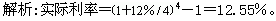 10.某項存款年利率為12%,每季復利一次,其實際利率為( )。